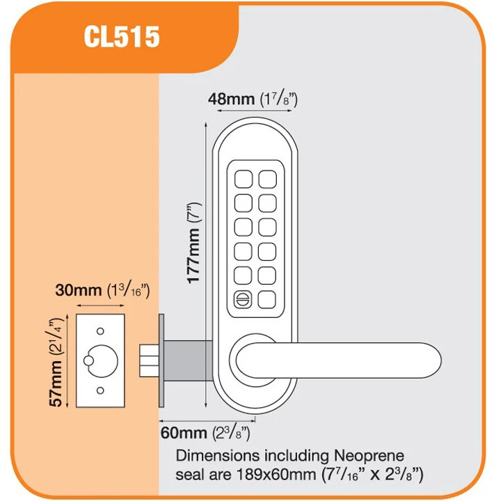 - Mechanical digital door lock with 60mm backset.
