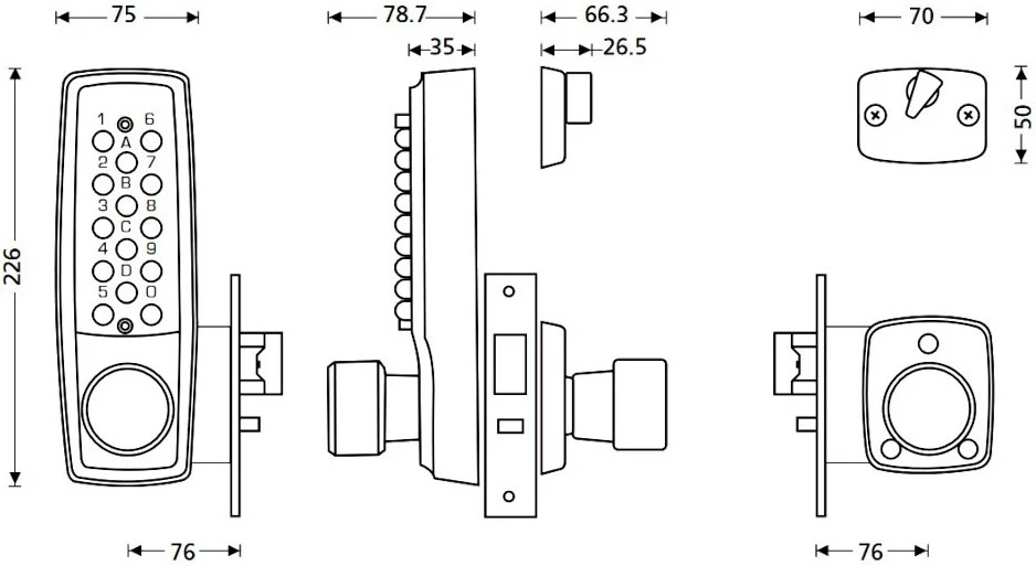 - Mechanical digital door lock with 76mm backset.