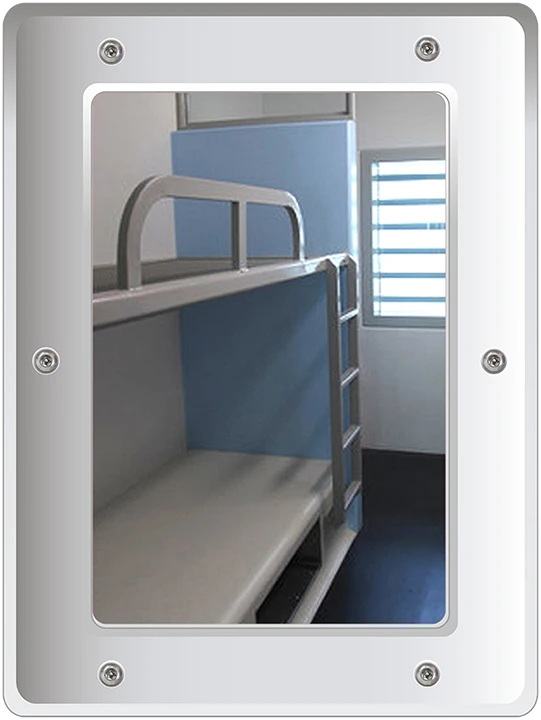 This wall mountable rectangular vanity mirror is constructed from 3mm impact resistant polycarbonate which is encapsulated for added security.